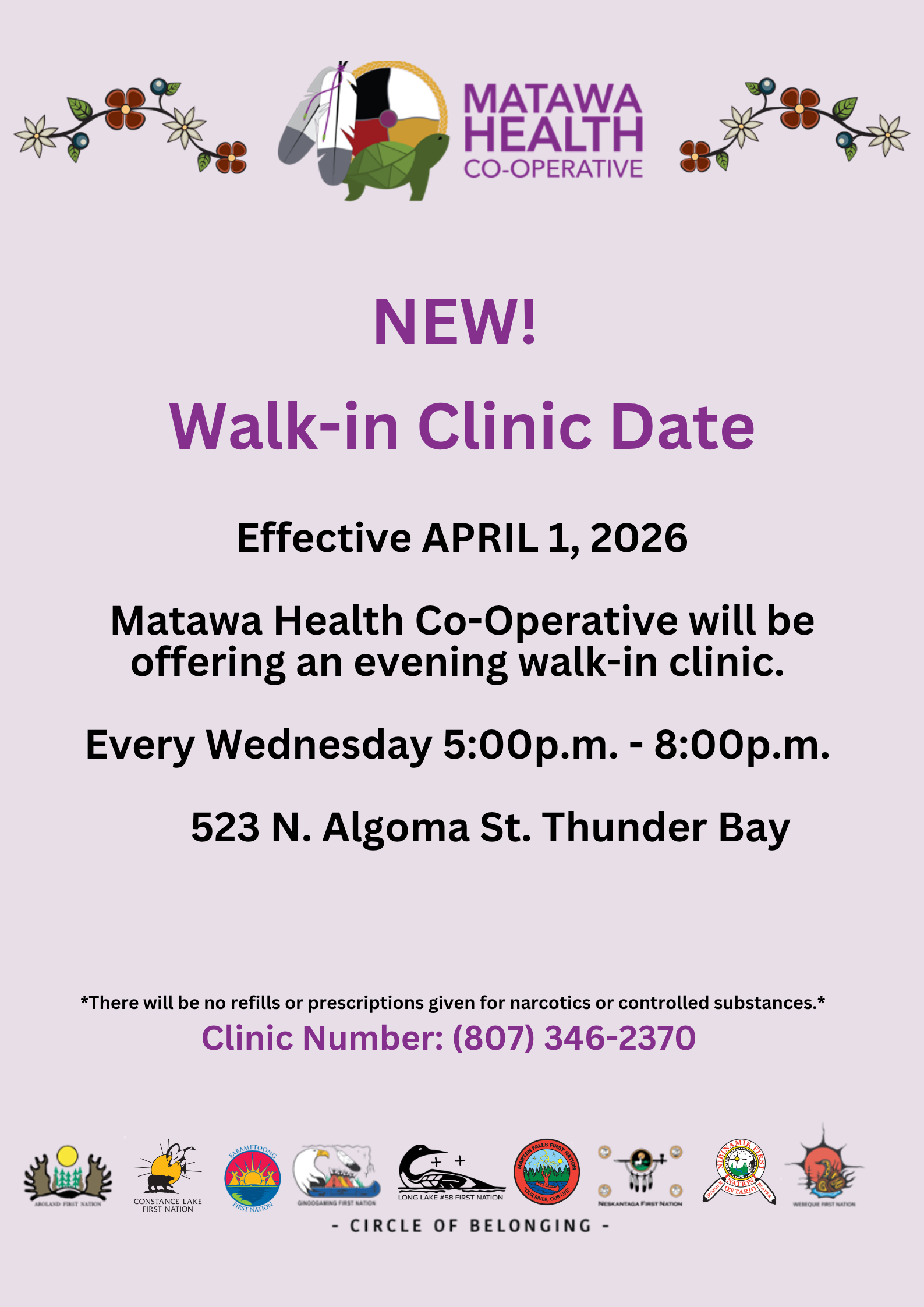In order to improve access to services and to provide our patients with the best care, the Matawa Health Co-operative offers a Team-Based Care model where patients see any provider for the care they need at a time that suits them best. For more information, please see this letter from Matawa Health Co-operative’s Executive Director Frances Wesley.